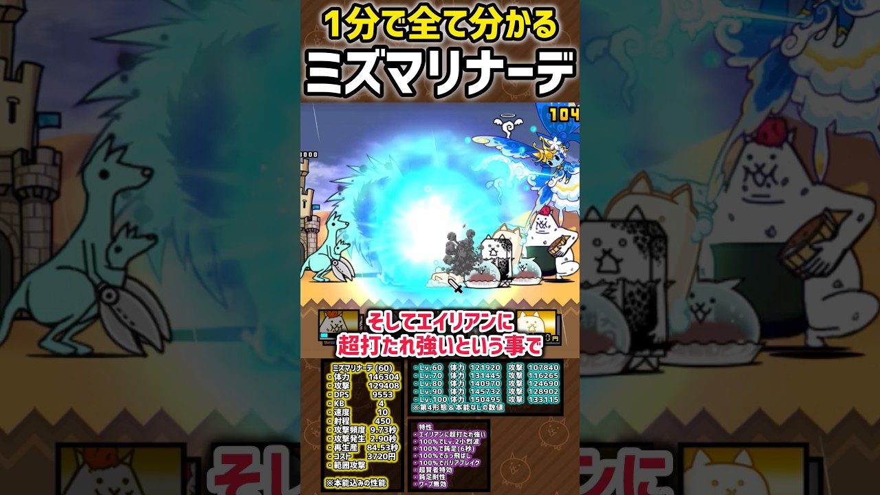 【1分で分かる】ミズマリナーデ 本能&性能紹介 #にゃんこ大戦争